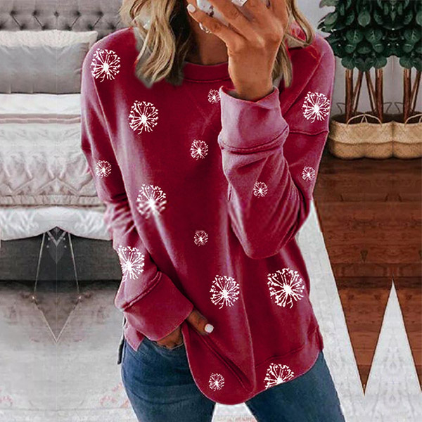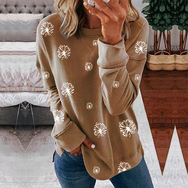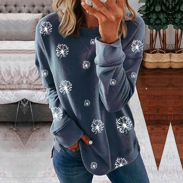 As for a casual,relaxed yet stylish style,you can just have a try this sweatshirt. The dandelion printed pattern design is the highlight,which makes this piece look more eye-catching and unique. Simple and classic in design style,but it can keep the style and comfy.
