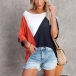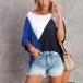 Casual Style Dolman Sleeve Round Neck Contrast Color T-shirt