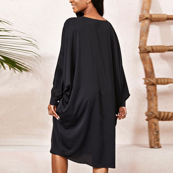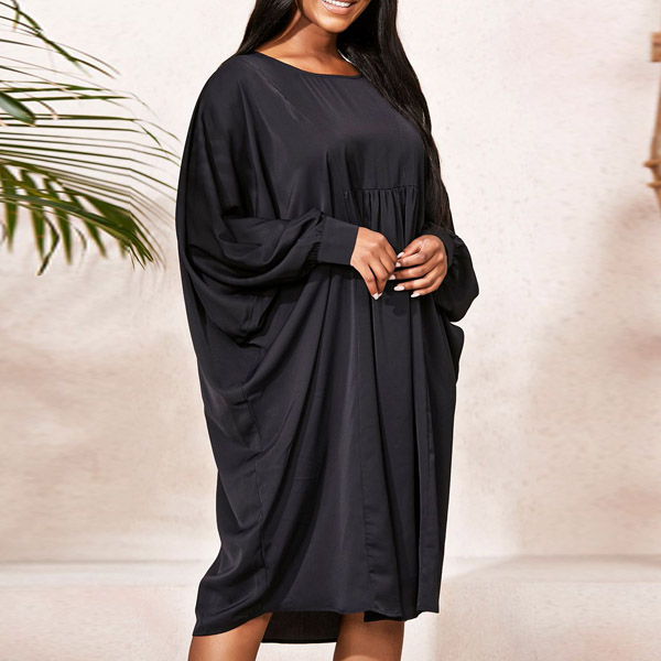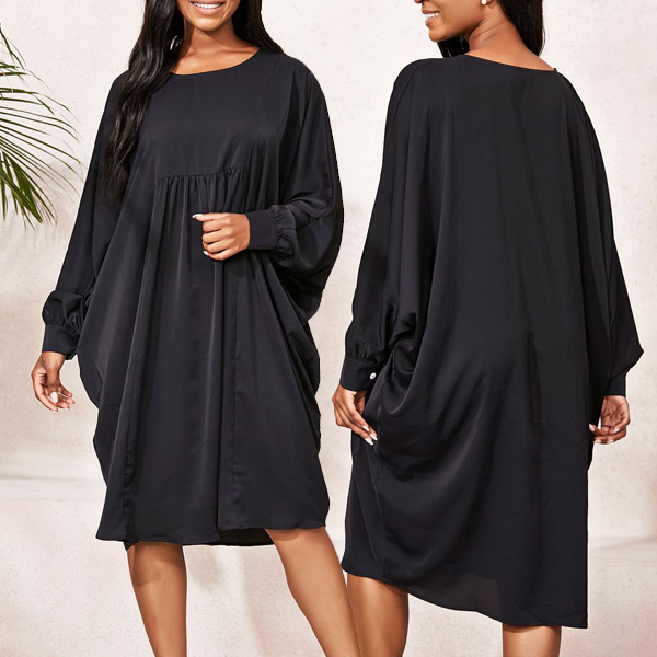When you wanna a casual,relaxed yet stylish daily style,this dress can be your perfect addition.Comes with the classic black tone,finished with dolman sleeve,round neck and a loose silhouette,this piece not only can keep the comfy,but also can exude your personality.