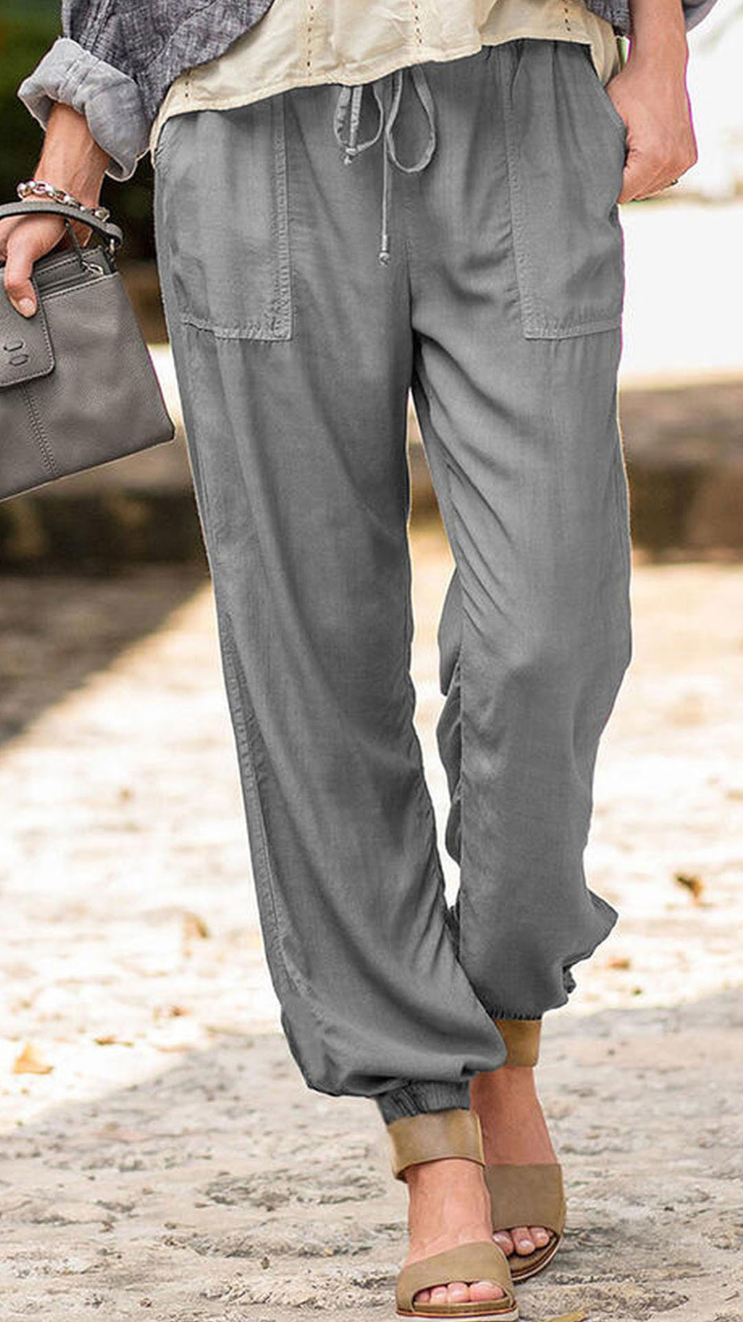 When you wanna try a different style pants,then you can make your eyes focused on this casual pants. Solid color style,the drawstring waist and loose silhouette design can give you an utmost comfort. You can just match with a simple top to enjoy your casual time.