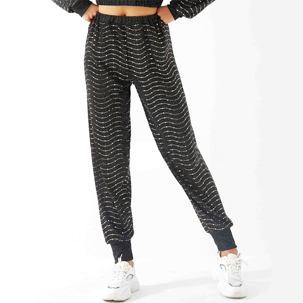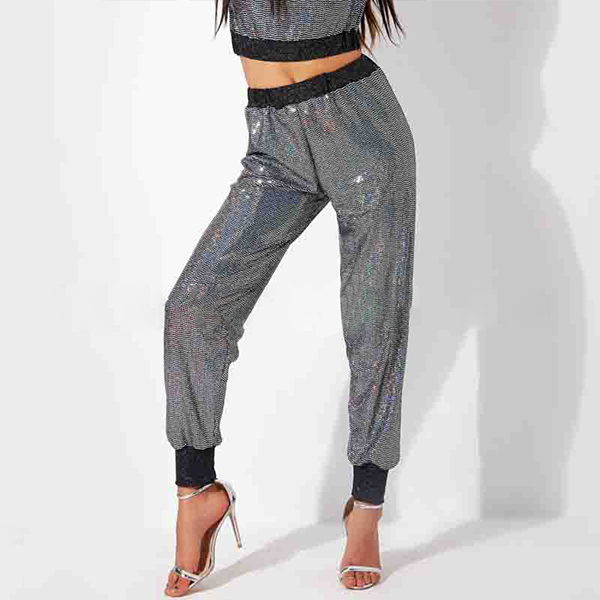 Wanna try a different style pants? Then you can just have a look at this piece. The sequin details make it look so shinning and attractive. The elastic waist,loose silhouette and elastic leg opening design will offer you an all-day comfort. You can match with a sequin crop top to achieve for a flirty and sassy look.