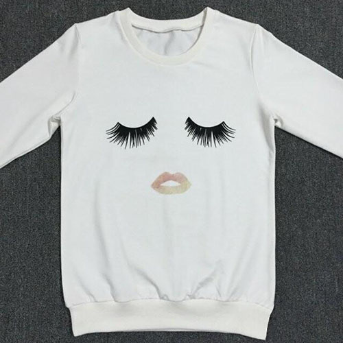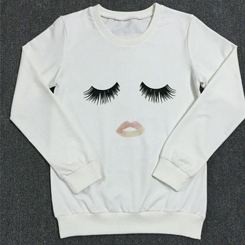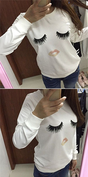 and long sleeve design, decorated with eyelash and red lips printed, this piece can give you a cute and