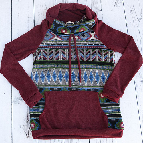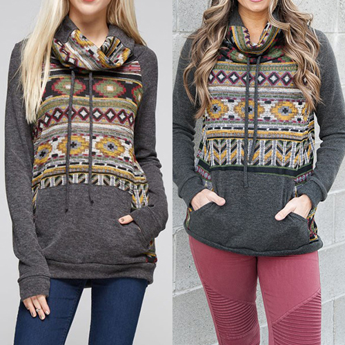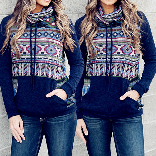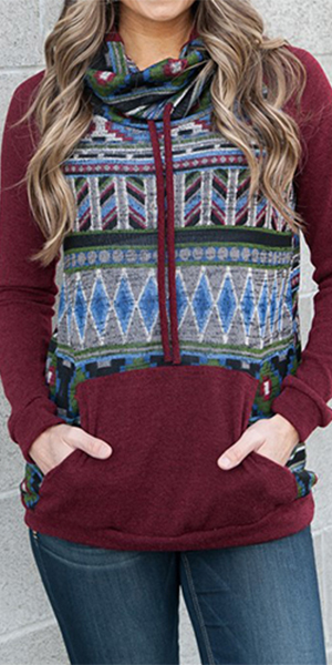 with turtleneck, long sleeve and front pocket. Chic printed style can show your stylish and eye-catching