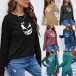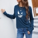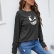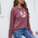 Casual Style Funny Pattern Long Sleeve Round Neck Loose T-shirt