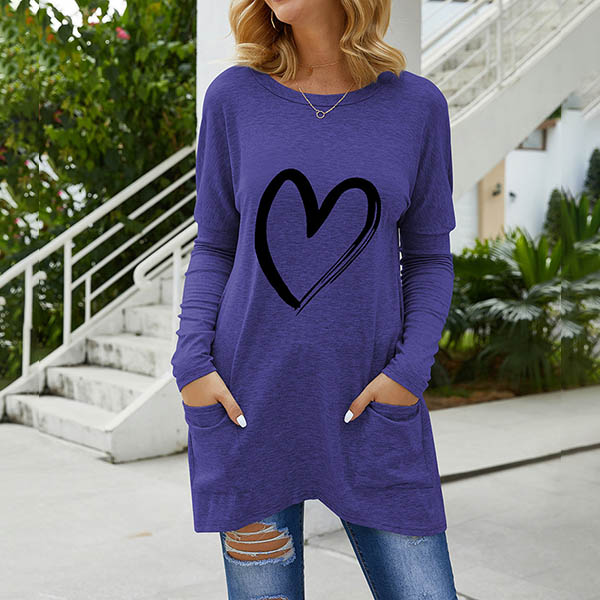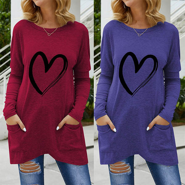 This t-shirt that combines of casual,cozy and stylish vibes is worth to have a place in your wardrobe. The heart pattern design breaks the simple design style. Crafted from soft and breathable fabric,with long sleeve,round neck and a loose silhouette,this piece is sure to give you an utmost comfort.