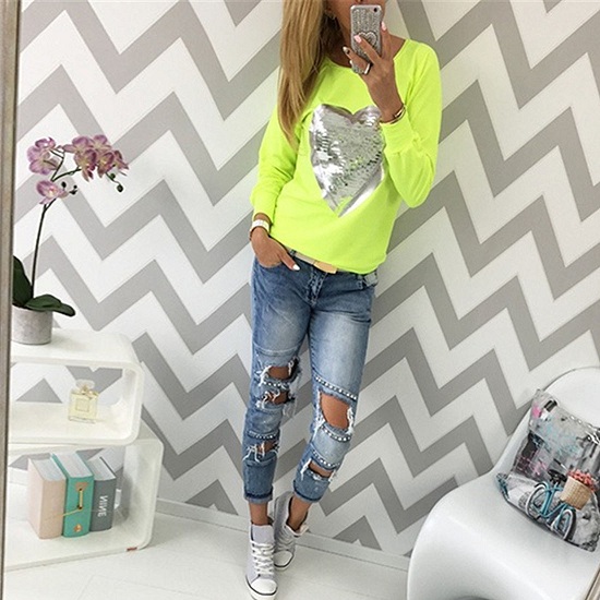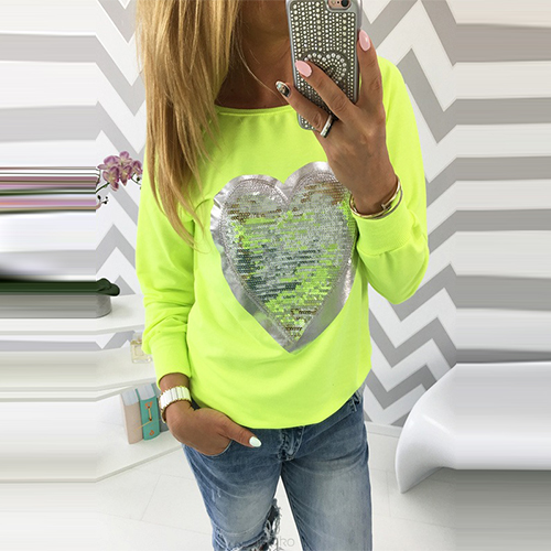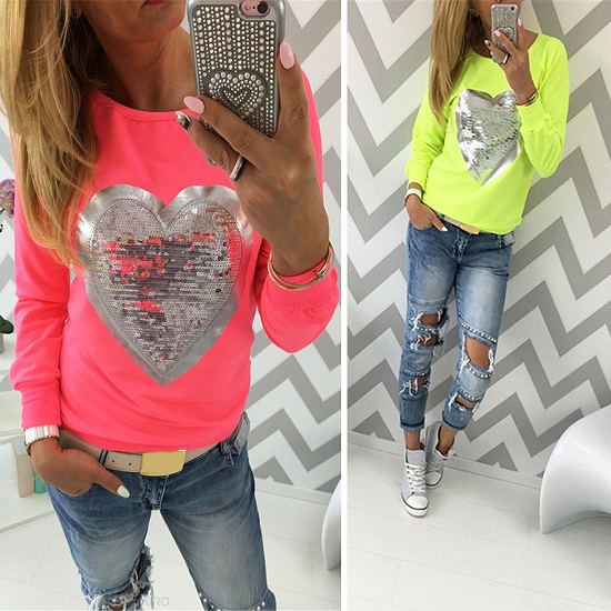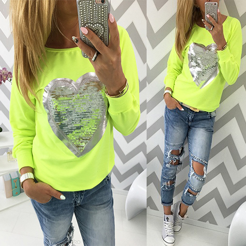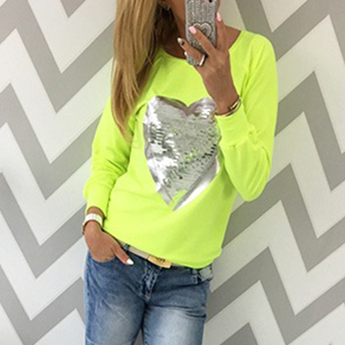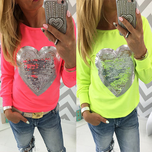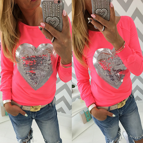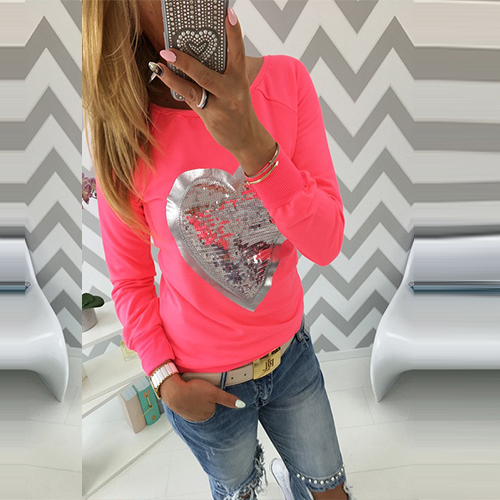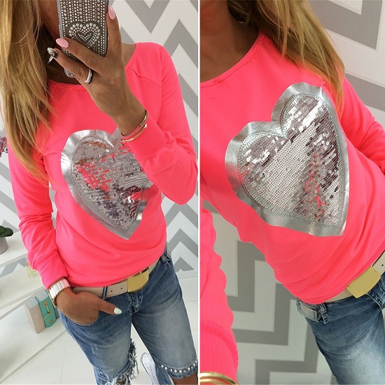 heart-shaped sequin printed design, vogue and eye-catching. On your weekend, prepare