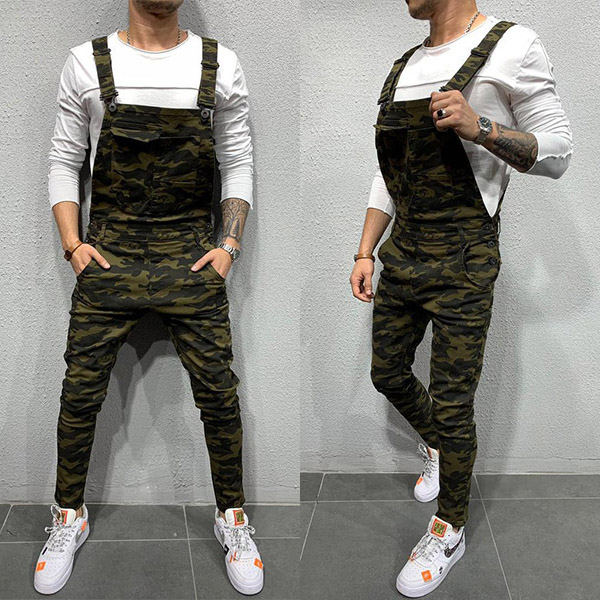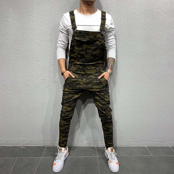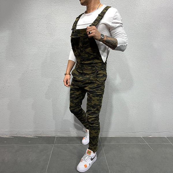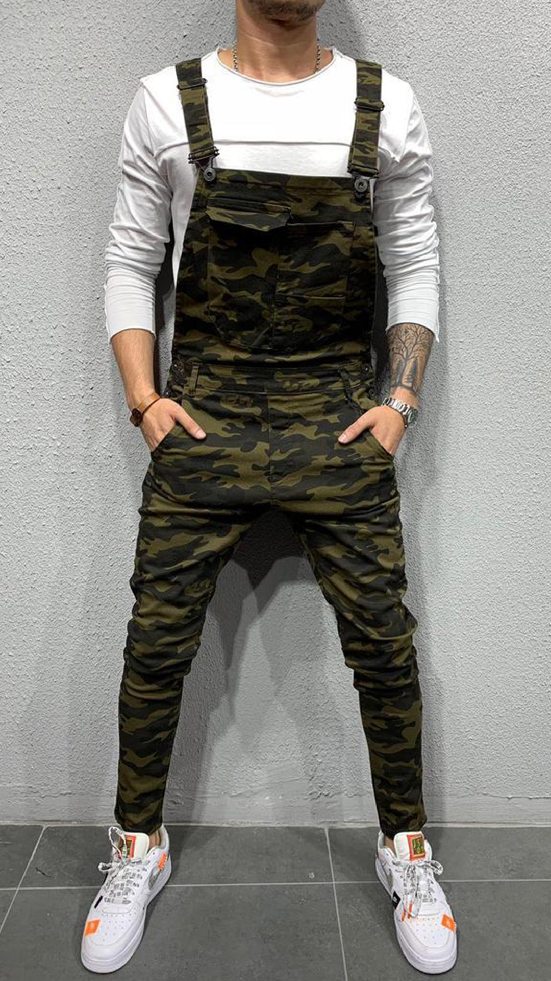 Casual Style High Waist Camouflage Printed Man's Overalls