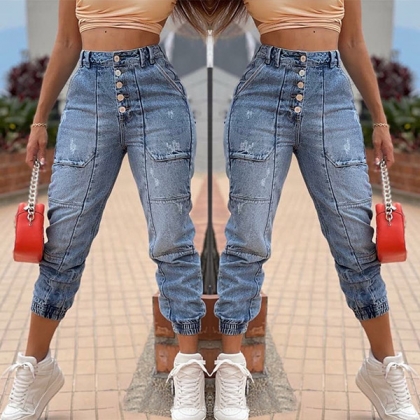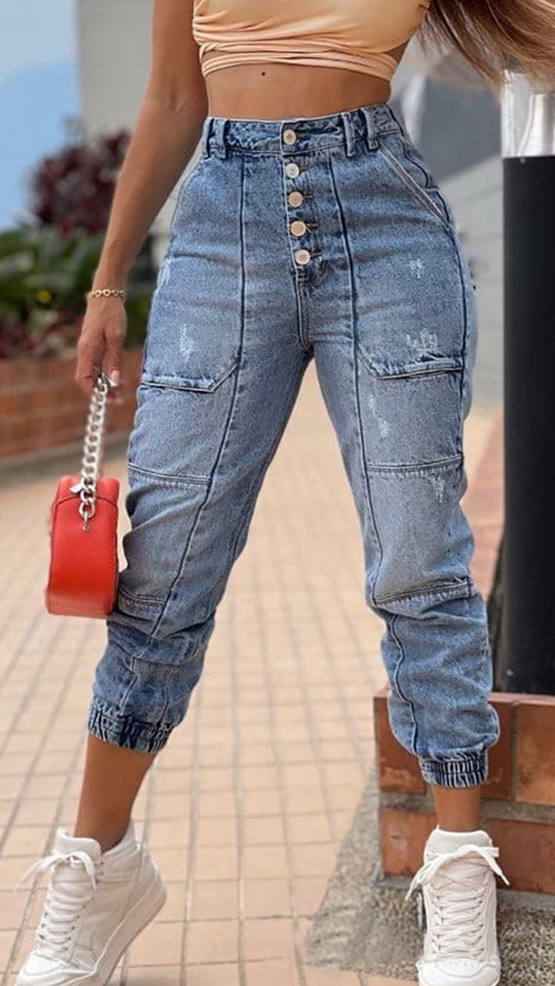 Crafted from soft and breathable fabric,this jeans can give you an all-day comfort. The high waist and elastic leg opening design can better showcase your slender legs. No matter matching with a t-shirt,,shirts,sweater,you can look fashionable and laid-back enough!