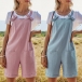 Casual Style High Waist Front-pocket Solid Color Loose Sling Romper