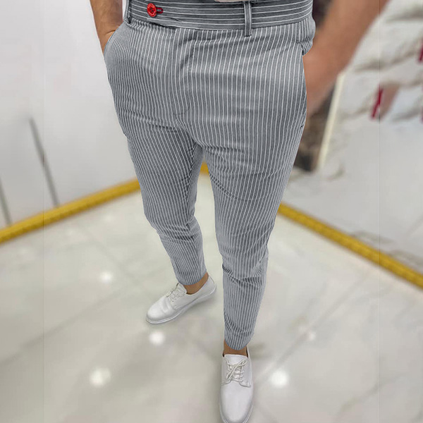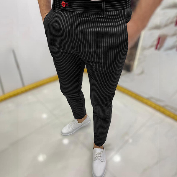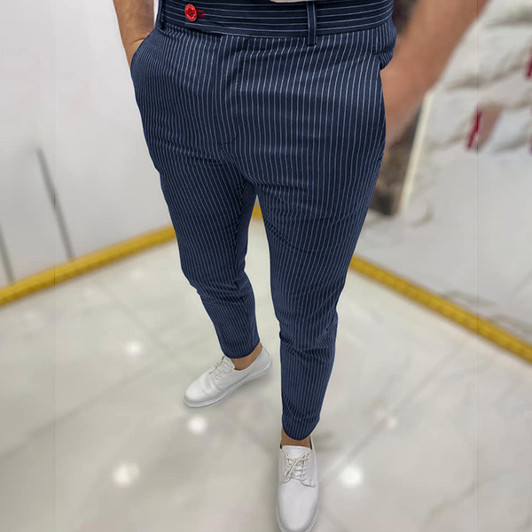 Casual Style High Waist Man's Stripe Pants