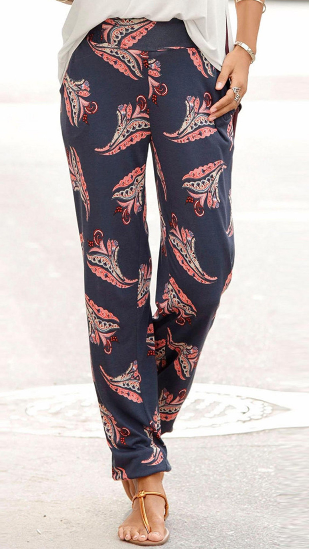 The perfect epitome of cozy and stylish sense,this pants is worth to arouse your attention. Crafted from soft and breathable fabric,with high waist and a loose silhouette,this piece not only can keep the comfy,but also can showcase your slender legs. And the chic printed details will make this piece look more attractive. Your perfect choice on your casual days.