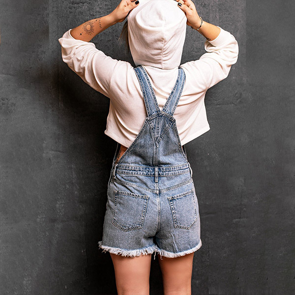 When it comes to a casual,youthful and playful summer style,you can just have a try this denim overalls. It is crafted from soft and breathable fabric,designed with a relaxed-fit silhouette and ripped details,this denim overalls can keep the comfy as well as maintain your personality. We suggest you matching with a simple t-shirt to start your wonderful day.