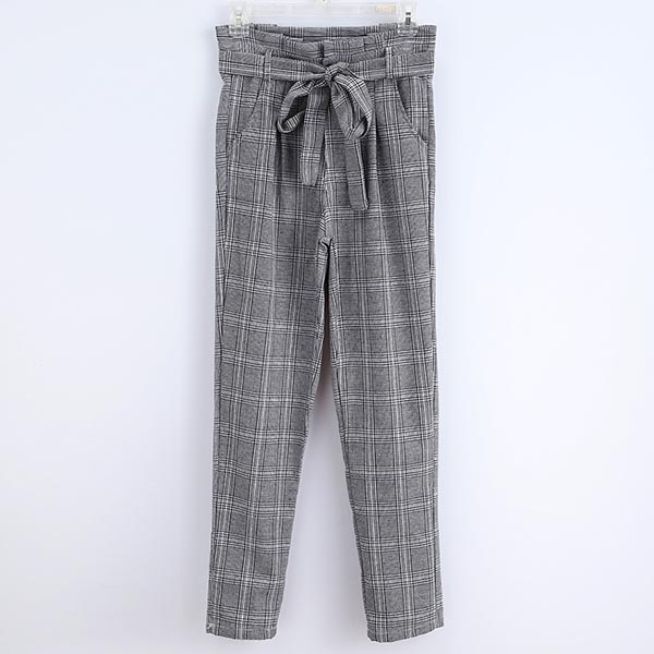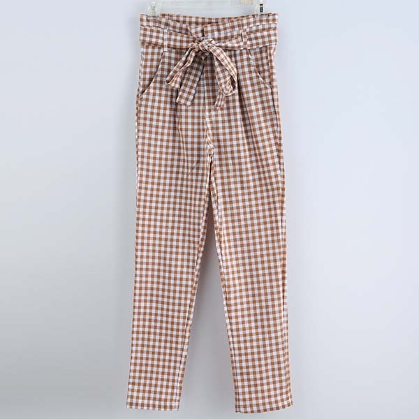 plaid print, feature a high-rise waist with self-tie design, detail with pleated trim, come with slant slip pockets,