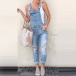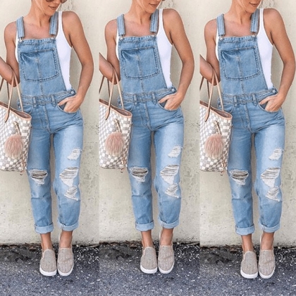 You can look more playful and youthful when you dress yourself up with this denim overalls. The high waist and fit silhouette design can showcase your slender figure. Crafted from soft and breathable fabric,this piece also can give you a comfortable day. And the ripped details will make this piece full of personality and style. Simply matching with a t-shirt,then you can look laid-back and fashionable enough!