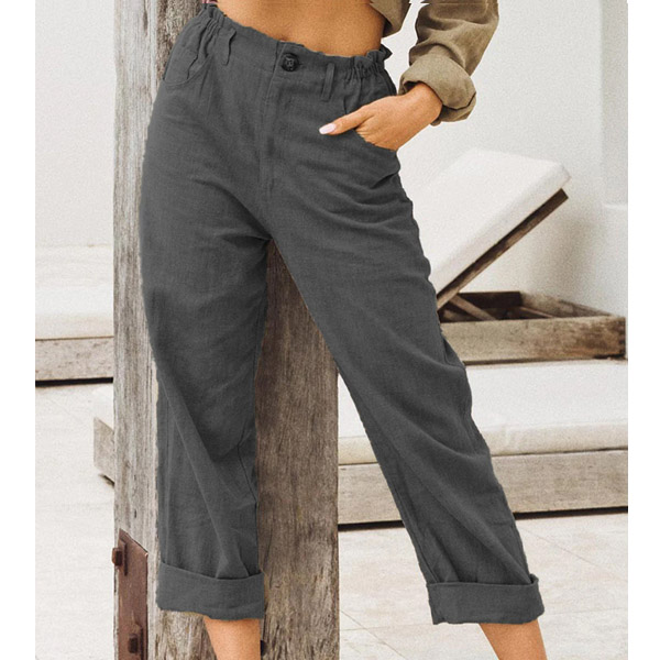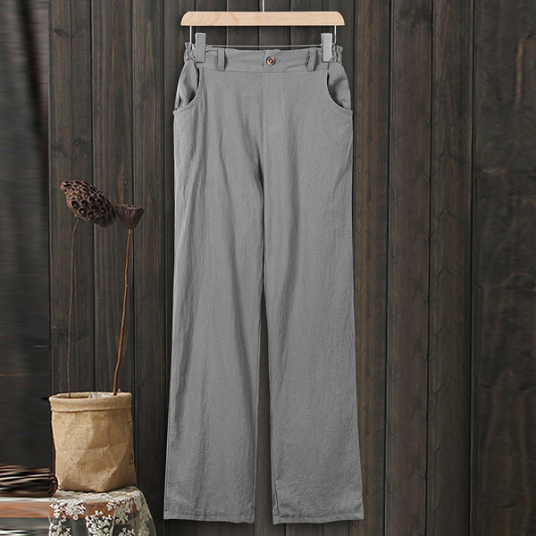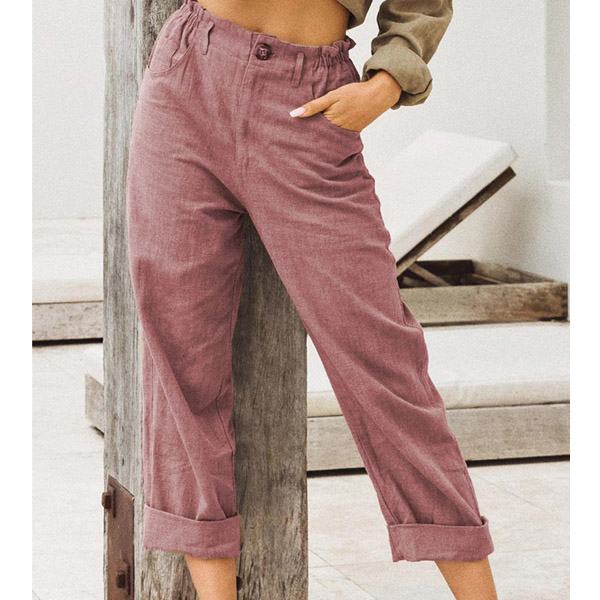 Casual Style High Waist Solid Color Cotton Linen Pants