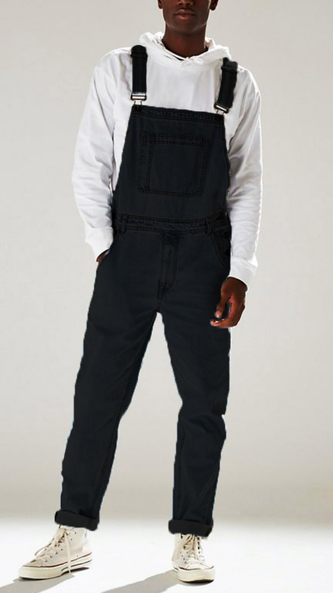 Except for the jeans and suit pants,this denim overalls can be another good choice. Its soft and breathable fabric can ensure you a comfortable day. Finished with high waist and a relaxed-fit silhouette,this overalls can offer you a stylish but sill handsome style by teaming with your shirts or t-shirts.