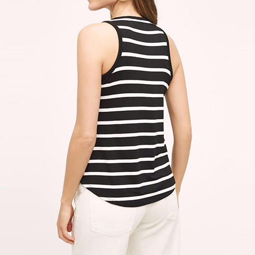 Striped style,crafted form soft and skin-friendly fabric,with a round neck and an irregular hem,