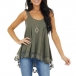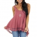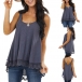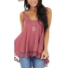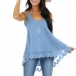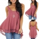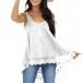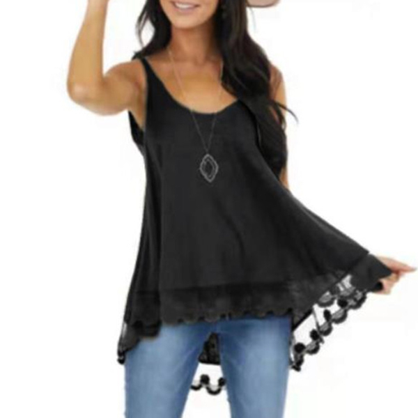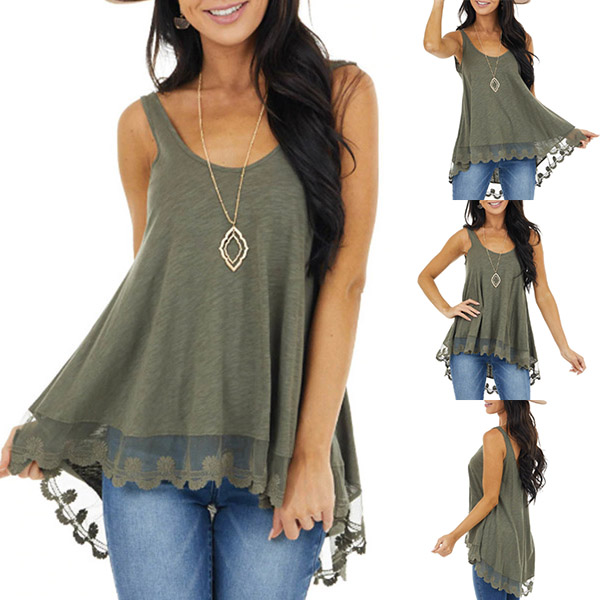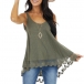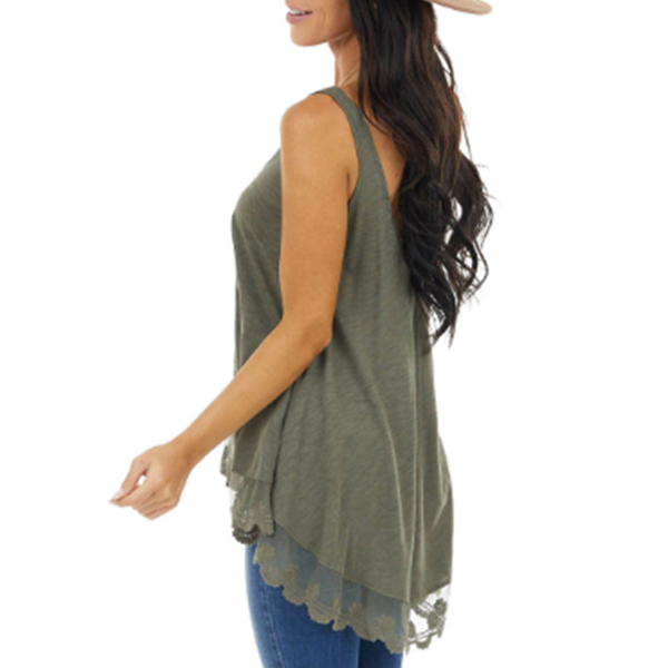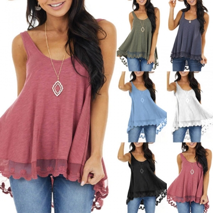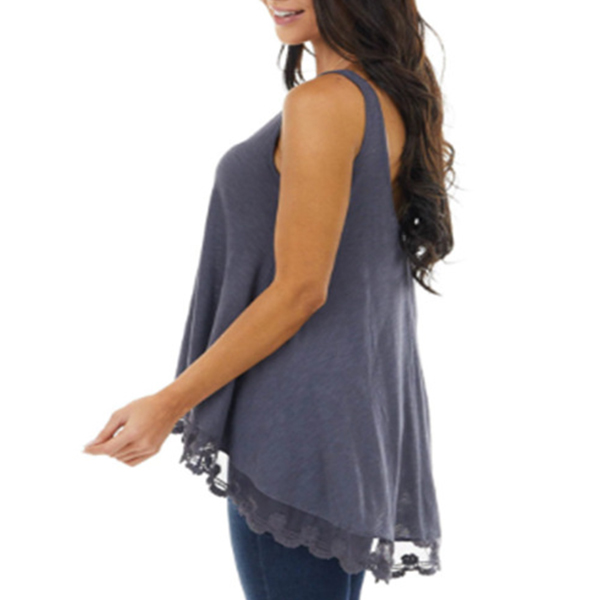 Casual Style Lace Spliced Hem Solid Color Loose Tank Top