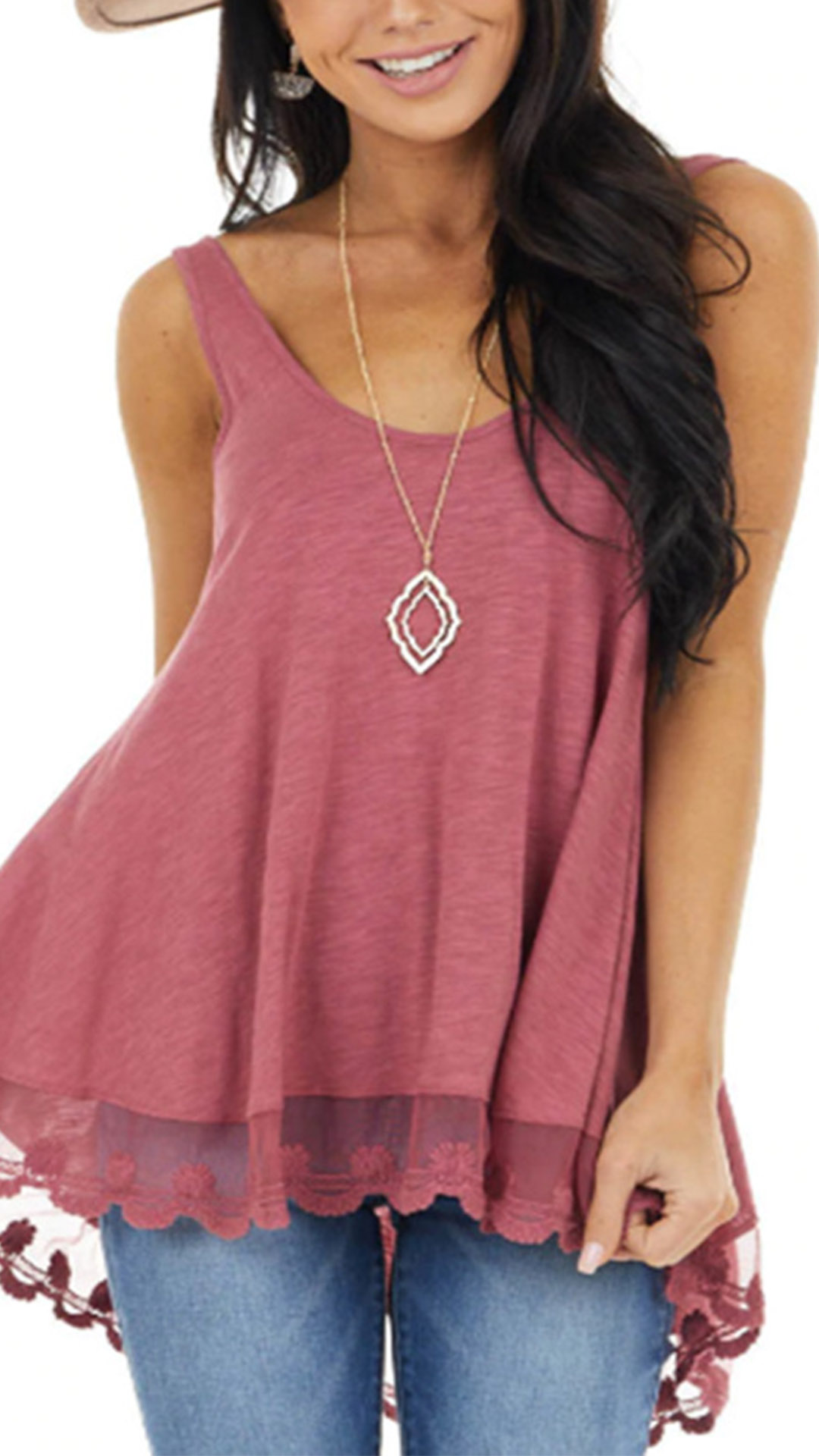 As one of the summer essentials,this tank top is worth to have a place in your summer wardrobe ensemble. Solid color tone design makes it look simple yet stylish. Meanwhile,the lace spliced hem design will make this piece look more attractive. Try to match with a tight pants to start your wonderful day.