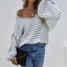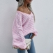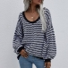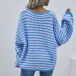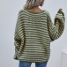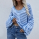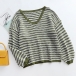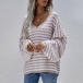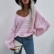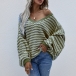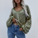 Casual Style Lantern Sleeve V-neck Loose Stripe Sweater