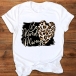 Casual Style Leopard Heart Letters Printed Short Sleeve Round Neck T-shirt