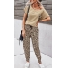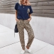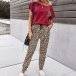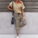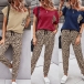 Casual Style Leopard Printed Spliced T-shirt + Pants Two-piece Set