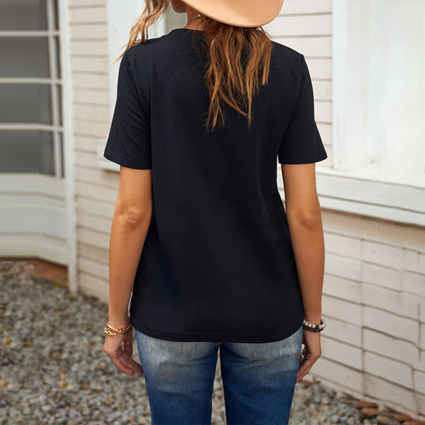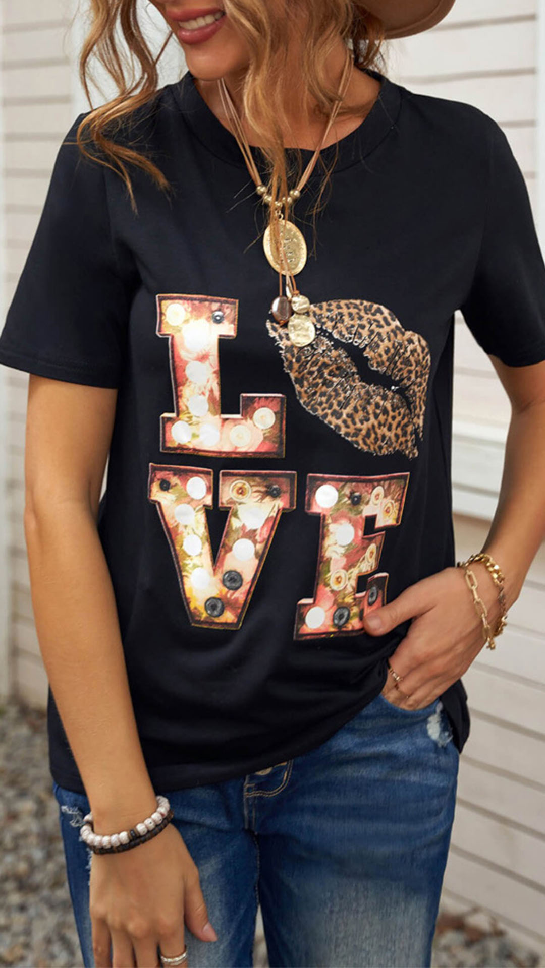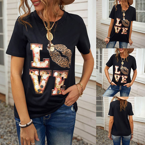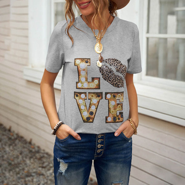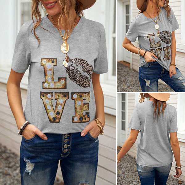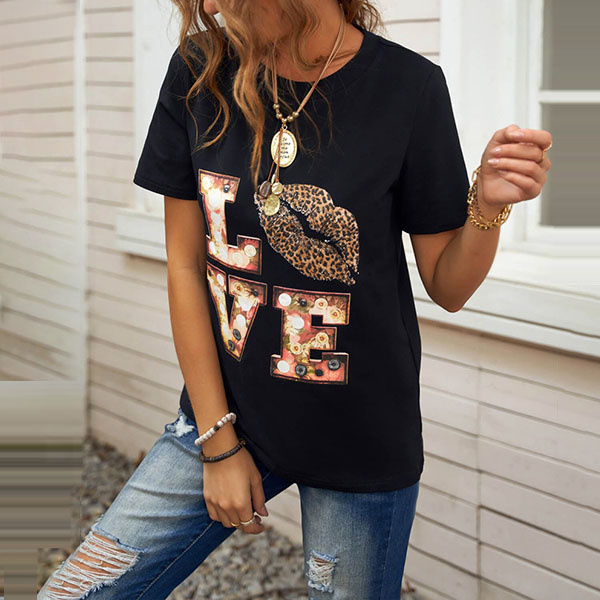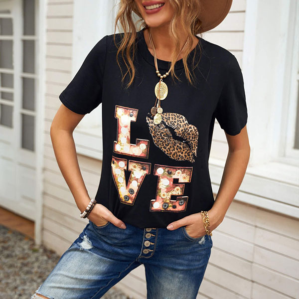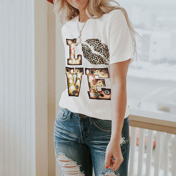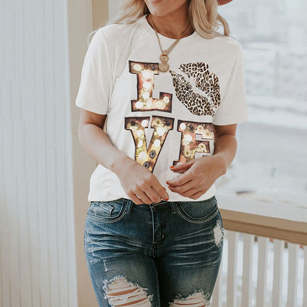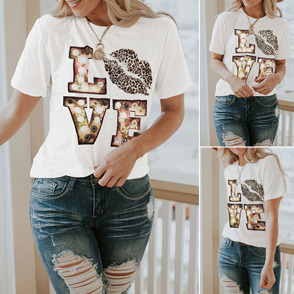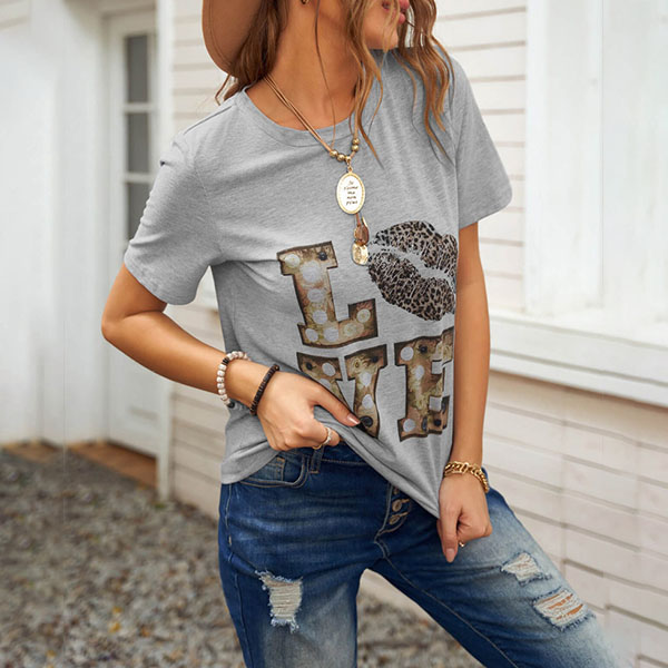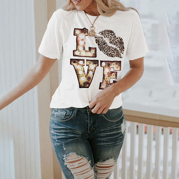 As for a simple,casual,laid-back yet fashionable daily look,you can just have a look at this t-shirt. The leopard printed details and letters design will make this piece look more stylish and attractive. Finished with short sleeve,round neck and a loose silhouette,this piece also can ensure you an all-day comfort.