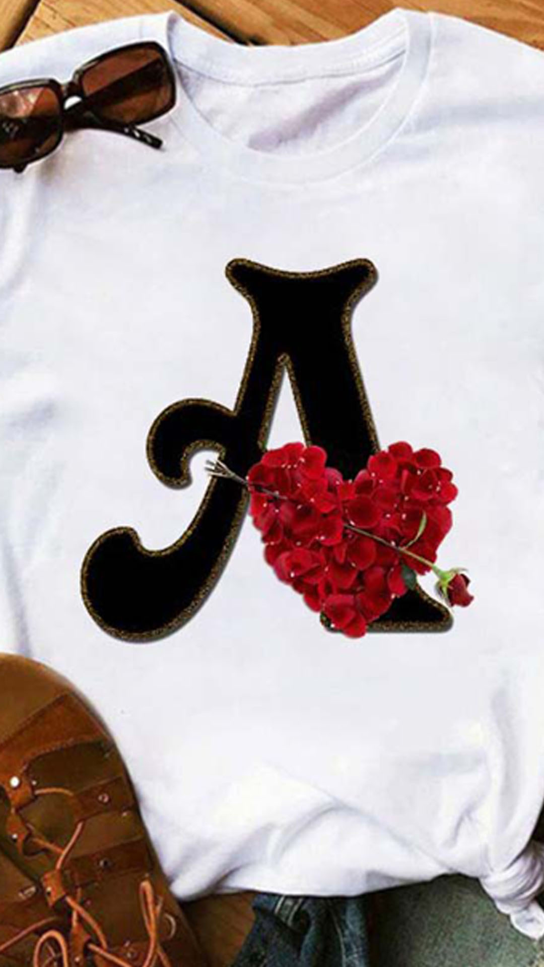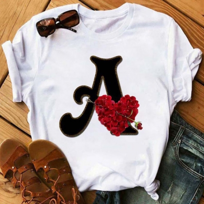 Combines of simple,cozy and stylish vibes,this t-shirt is yearning for a place in your wardrobe. The letter A and rose printed pattern make this piece look more attractive. Finished with short sleeve and round neck design,this piece not only can keep the comfy,but also can be matched with different style bottoms.