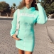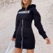 Casual Style Letters Printed Front-zipper Long Sleeve Hooded Slim Fit Sweatshirt Dress