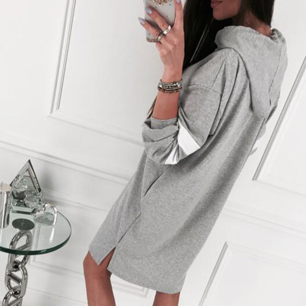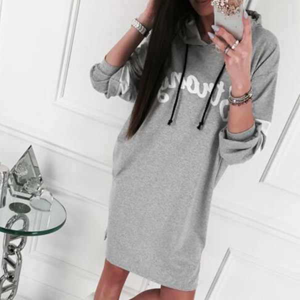Casual Style Letters Printed Long Sleeve Slit Hem Hooded Sweatshirt Dress