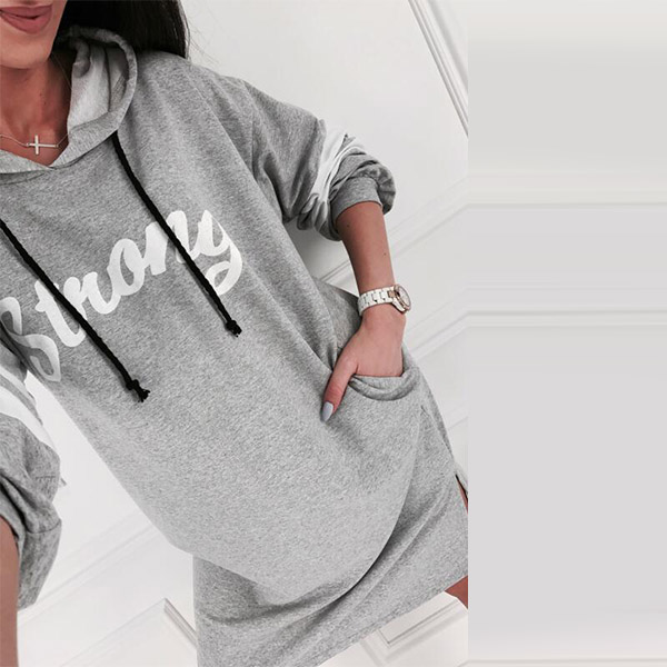 A perfect combination of casual and cozy,this sweatshirt dress is just the thing you need on these casual days. The letters printed details and slit hem design make this piece look not so simple,while the soft fabric and loose silhouette design can ensure you a comfortable day. We suggest you matching with your casual flat shoes to have a wonderful day!