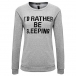 A relaxed crew neck sweatshirt with "I'D RATHER BE SLEEPING" slogan. Be it a confession or