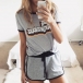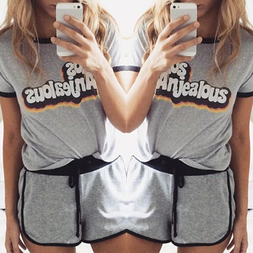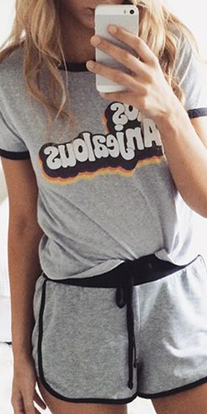 This two-piece set is your perfect choice for you in hot summer days. Letters printed style,including a short sleeve