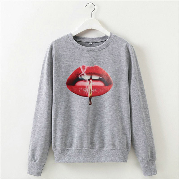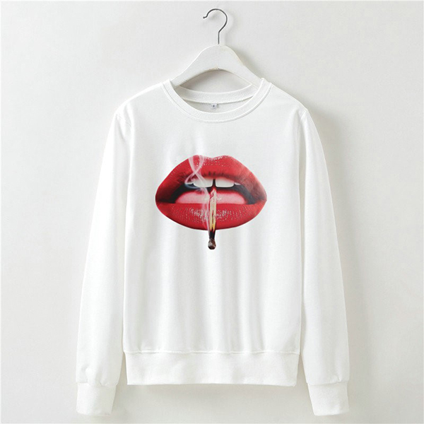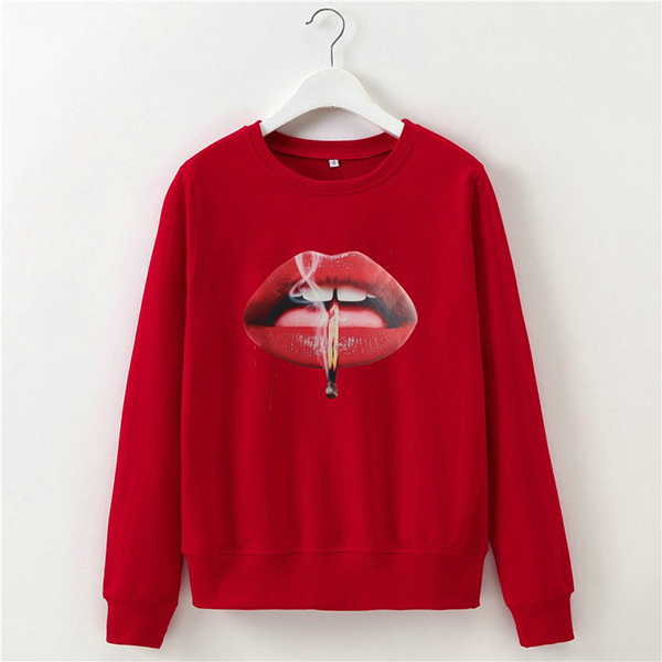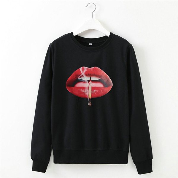 Shake off your ordinary with this tops. Lips and cigarette printed design can effortlessly give you a distinct style. Boasting round neck, long sleeve and printed design, this tops can let you stand out from the crowd. Simple but singular design idea, this tops would bring you into a fashion.