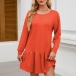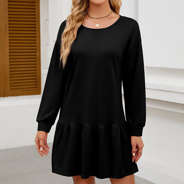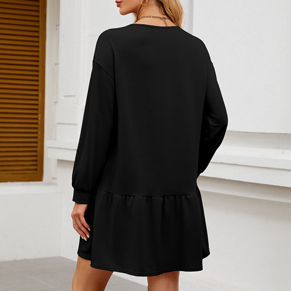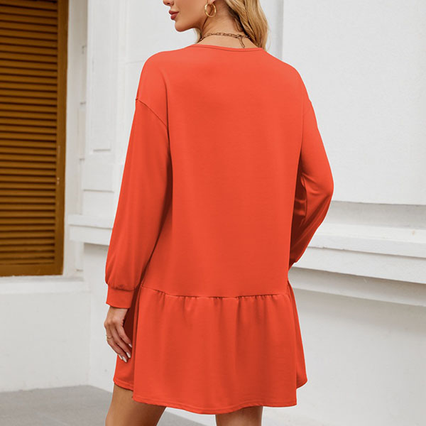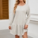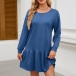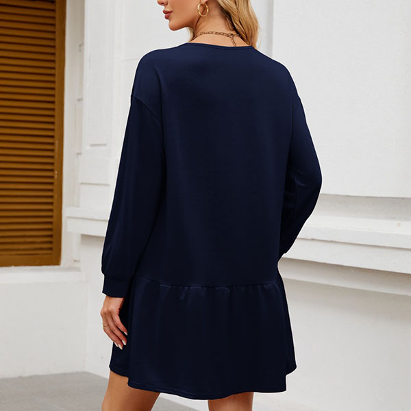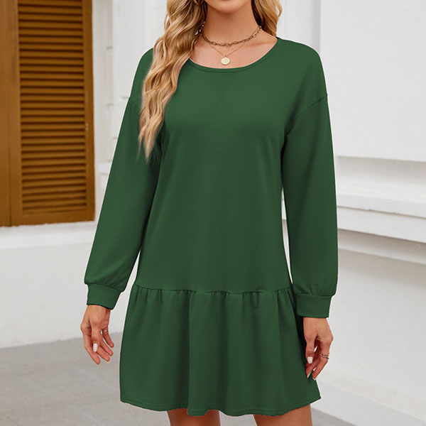 Casual Style Long Sleeve Crossover Round Neck Dress