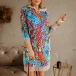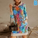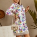 Casual Style Long Sleeve Hooded Colorful Printed Sweatshirt Dress