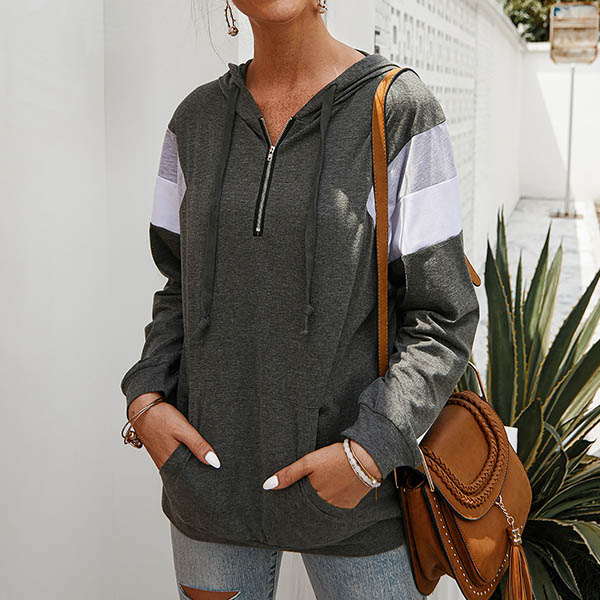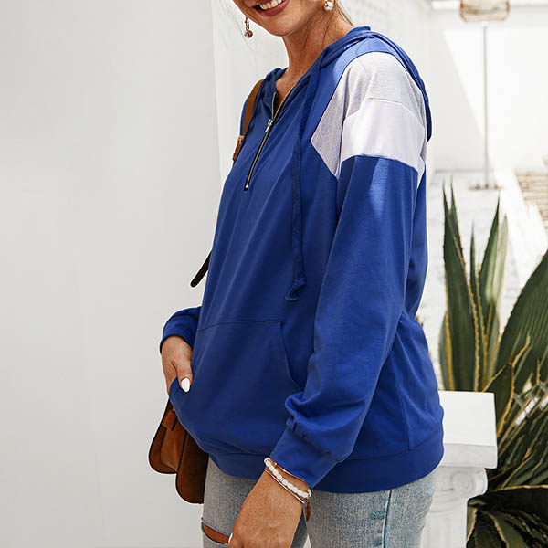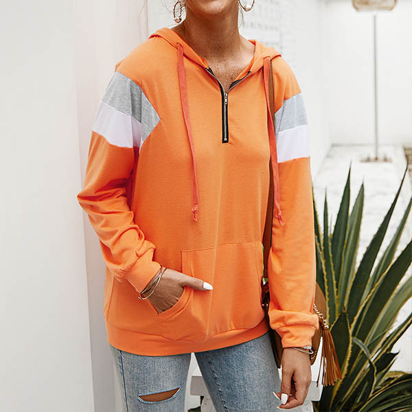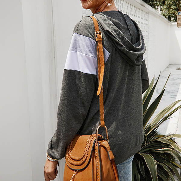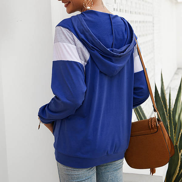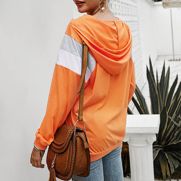 Casual Style Long Sleeve Hooded Contrast Color Sweatshirt