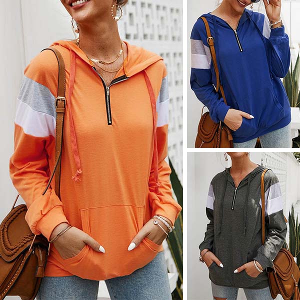 For a weekend look that is full of casual and relaxed taste,you can simply count on this sweatshirt. Contrast color style,finished with long sleeve,hooded silhouette and front kangaroo pocket,this classic yet stylish sweatshirt is sure to strike you in these early autumn days.