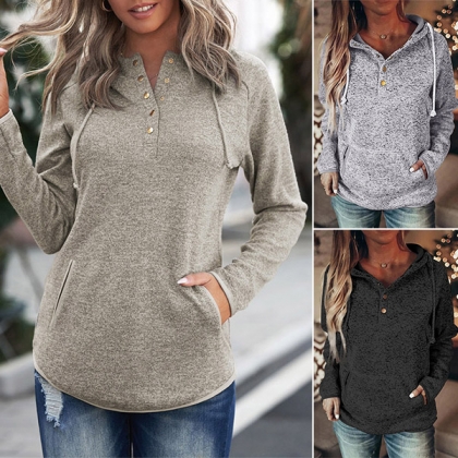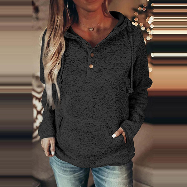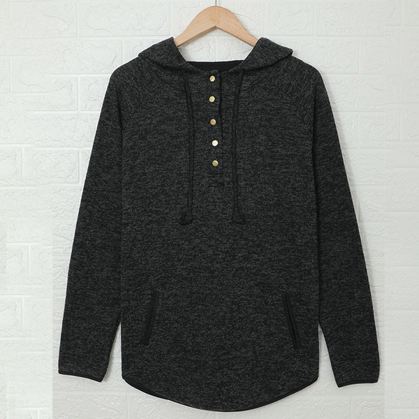 Casual Style Long Sleeve Hooded Front-pocket Loose Sweatshirt