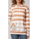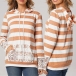 Casual Style Long Sleeve Hooded Lace Spliced Loose Stripe Sweatshirt