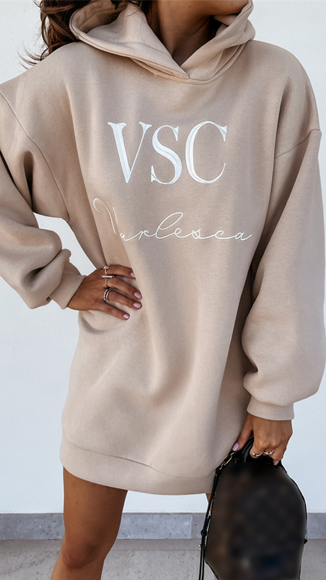 Casual Style Long Sleeve Hooded Letters Printed Sweatshirt Dress