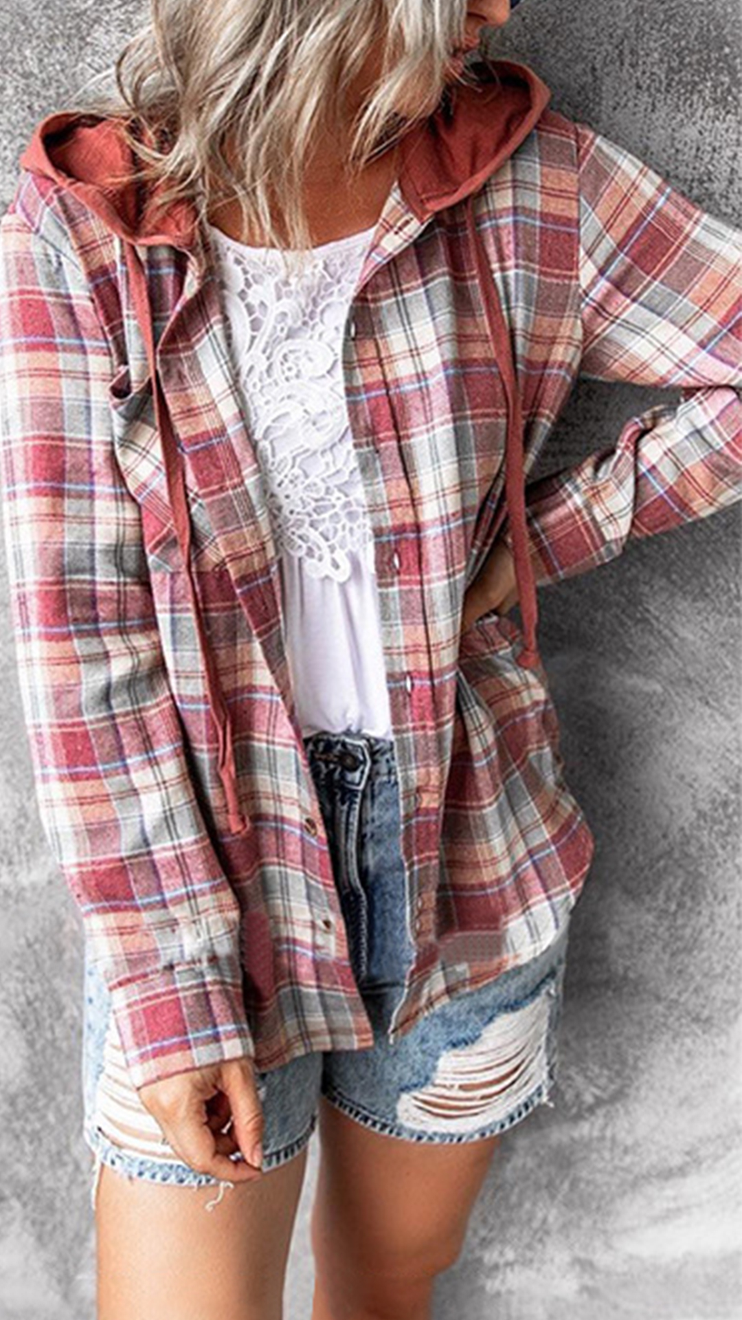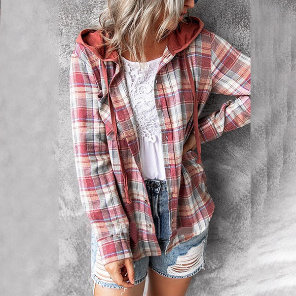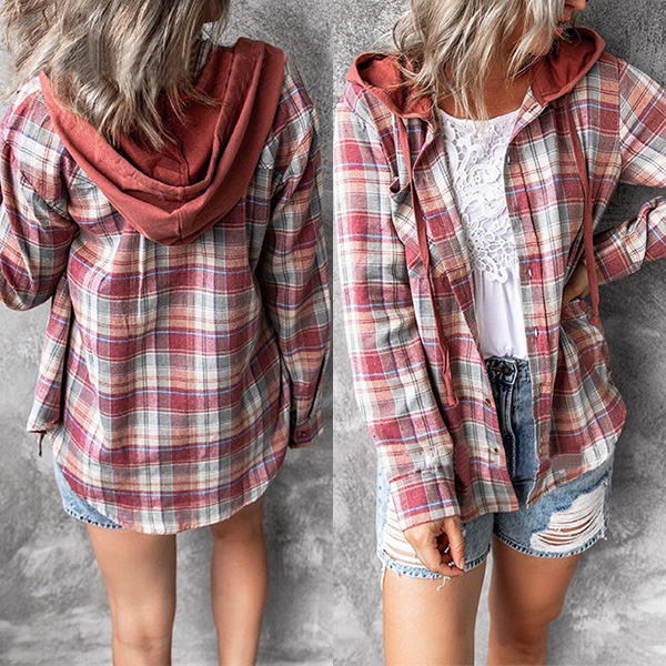 When the days get a little cold,this plaid cardigan can be your perfect choice. The hooded and loose silhouette design lend you some casual,relaxed vibes. Crafted from soft and breathable fabric,with long sleeve and single-breasted design,this piece is worth to be your wardrobe staple in these autumn days.