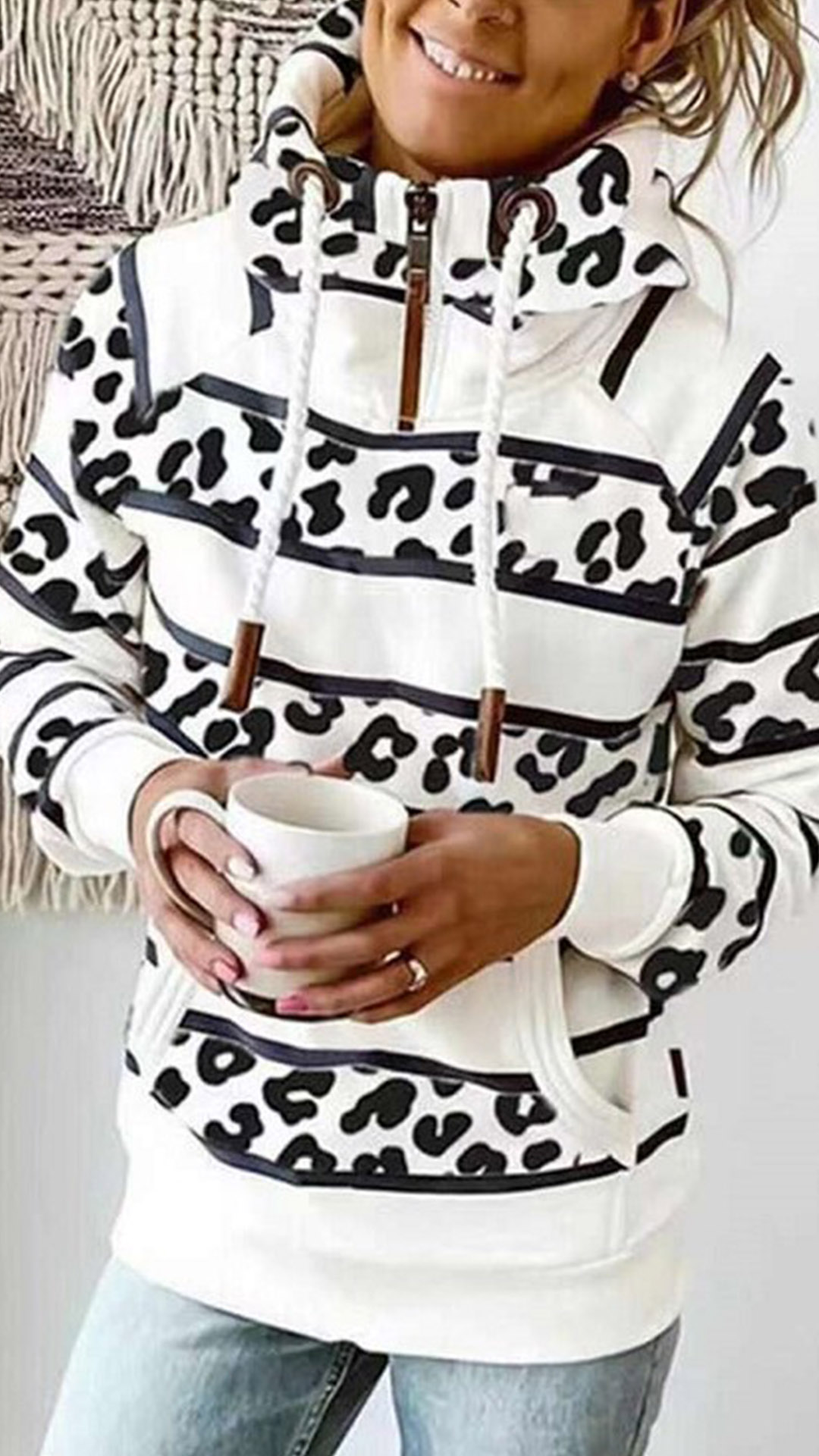 When you feel cold,you can just slip into this sweatshirt to stay warm. Its chic printed details can help you catch more eyes. Finished with long sleeve,hooded silhouette and plush lining design,this piece is sure to offer you a warm and comfortable day. Try to match with your jeans to look laid-back and fashionable!