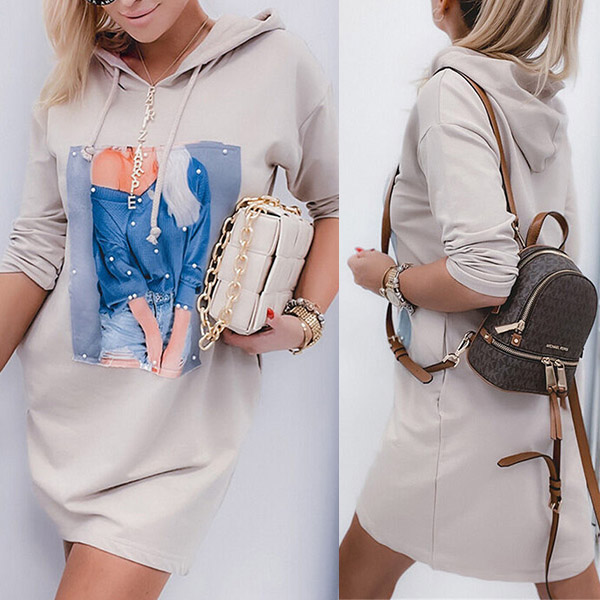 When it comes to a casual,relaxed yet fashionable autumn look,then this sweatshirt would be your perfect addition. The chic printed pattern design will help you catch more eyes. Crafted from soft,breathable fabric,with long sleeve and hooded silhouette,this sweatshirt dress can offer you different fashion styles by teaming with different style shorts.