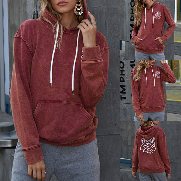 No one's wardrobe would be complete if without a sweatshirt. So what are you waiting for if you still not have one? The rose pattern design breaks the simple and dull design style,while the long sleeve,hooded silhouette and front-pocket deisgn maintain the classic design style. Perfect fit for matching with different style bottoms.