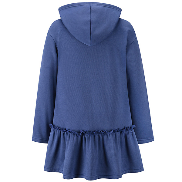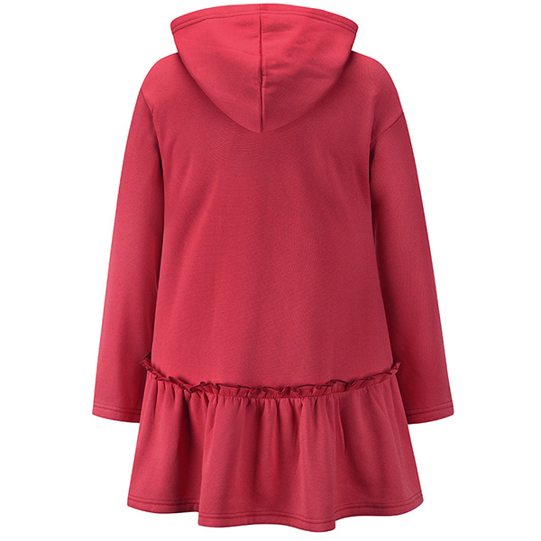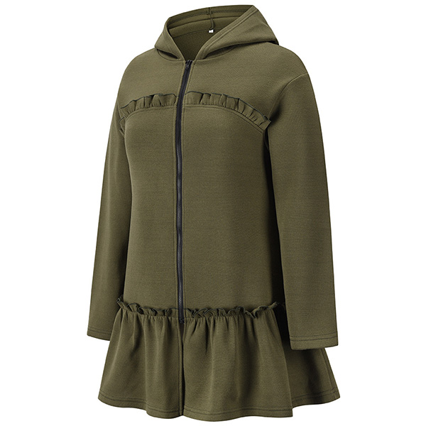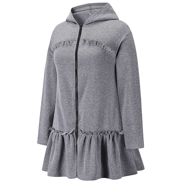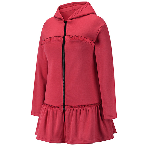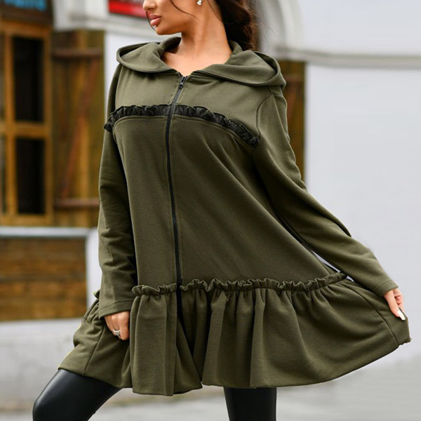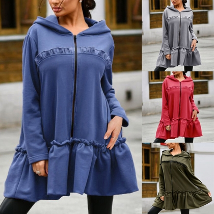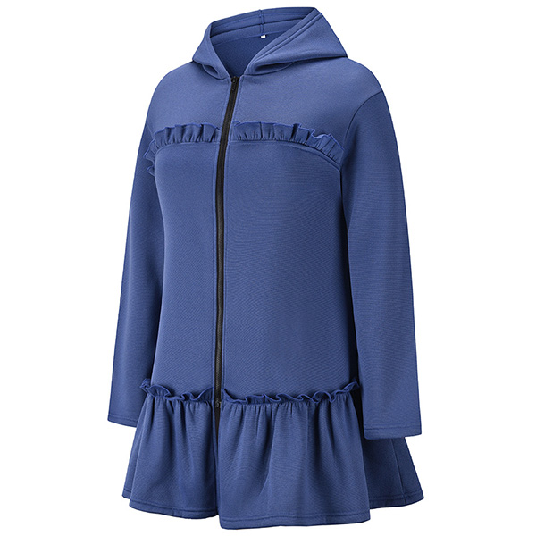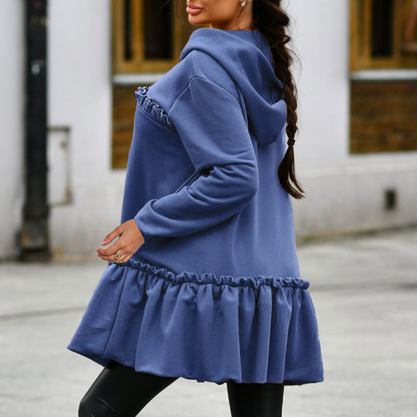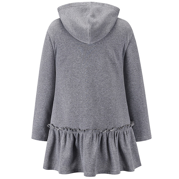 Casual Style Long Sleeve Hooded Ruffle Hem Sweatshirt Coat