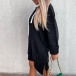 You can stay warm yet laid-back and fashionable in this sweatshirt. Solid color style,the long sleeve and hooded silhouette design maintain the classic design style,while the slit hem and long-style design can better exude your personality. We suggest you matching with your sneakers and tight pants to achieve for a stylish autumn look.