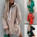 Casual Style Long Sleeve Hooded Slit Hem Loose Solid Color Sweatshirt