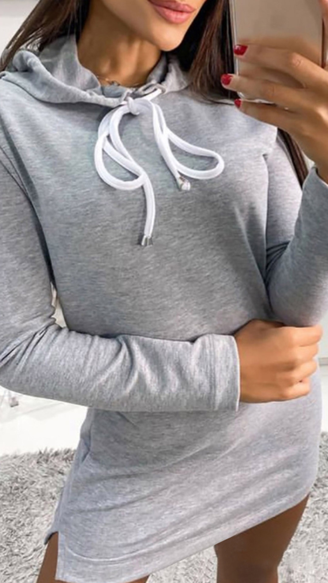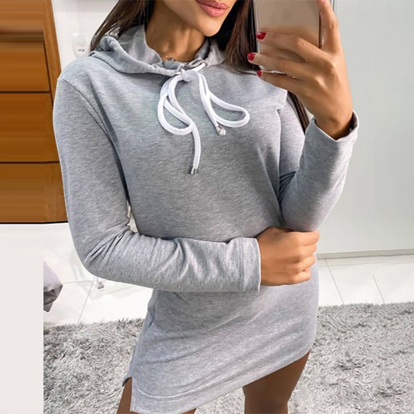 Casual Style Long Sleeve Hooded Slit Hem Sweatshirt Dress
