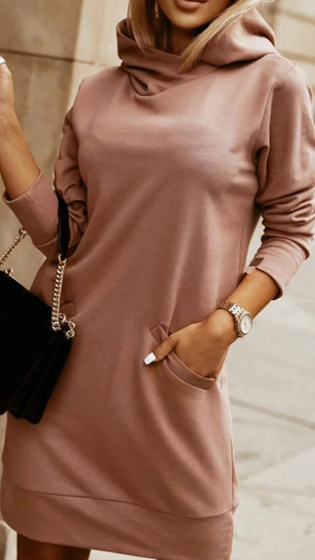 As for a laid-back and fashionable autumn look,this sweatshirt would be your wise choice. Solid color style,crafted from soft and breathable fabric,with long sleeve,hooded and a loose silhouette,this dress definitely can give you a comfortable day. You can match it with different style shoes for different fashion styles.